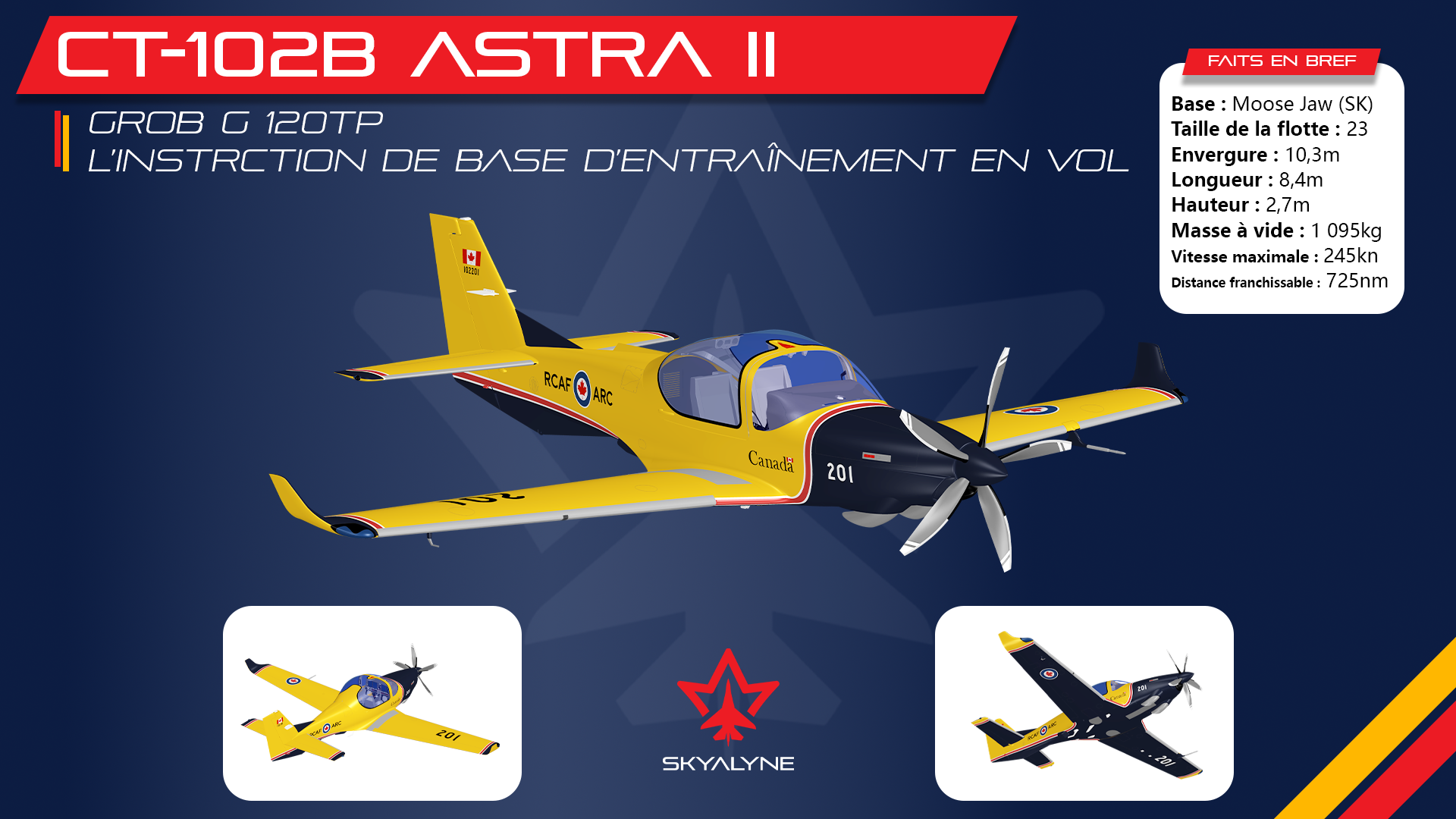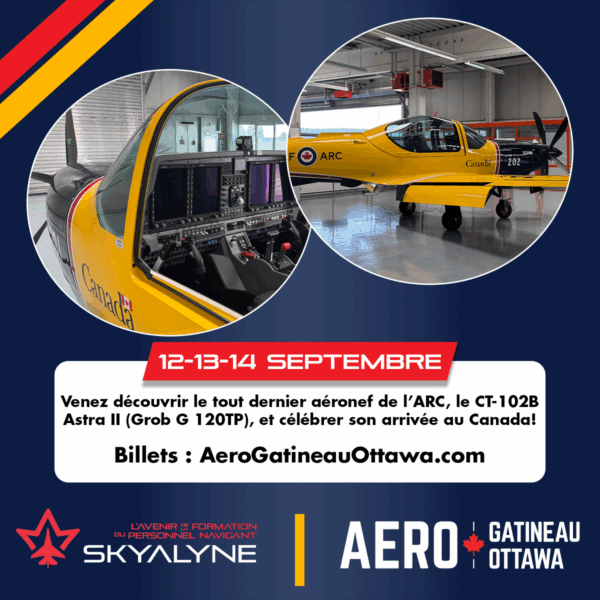 SkyAlyne est ravie d’annoncer que les deux premiers avions CT-102B (Grob G 120TP) destinés à être mis en service par l’Aviation royale canadienne (ARC) seront exposés lors du festival aéronautique Aero Gatineau Ottawa, qui se tiendra les 12, 13 et 14 septembre 2025 à Gatineau, au Québec.