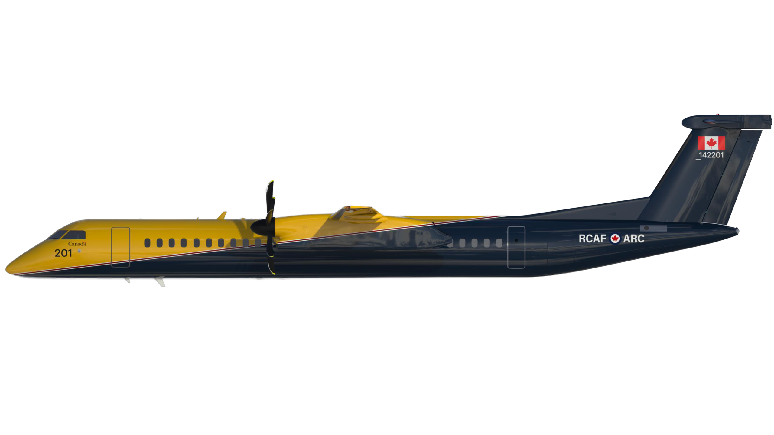 March 31, 2026 // Ottawa, ON — The Future Aircrew Training (FAcT) program CT-142Q Citadel (De Havilland Canada Dash 8-400) was shown today for the first time in RCAF colours. The livery was released digitally and in the RCAF presentation to the Military Flight Training Conference by Major-General Jeff Smyth, Chief of Air and Space Force Development.